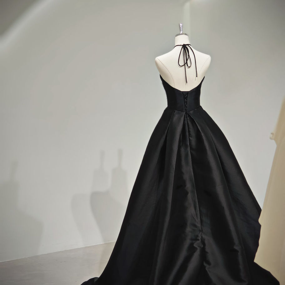 華奢な首元のラインを美しく見せるホルターネックデザイン。