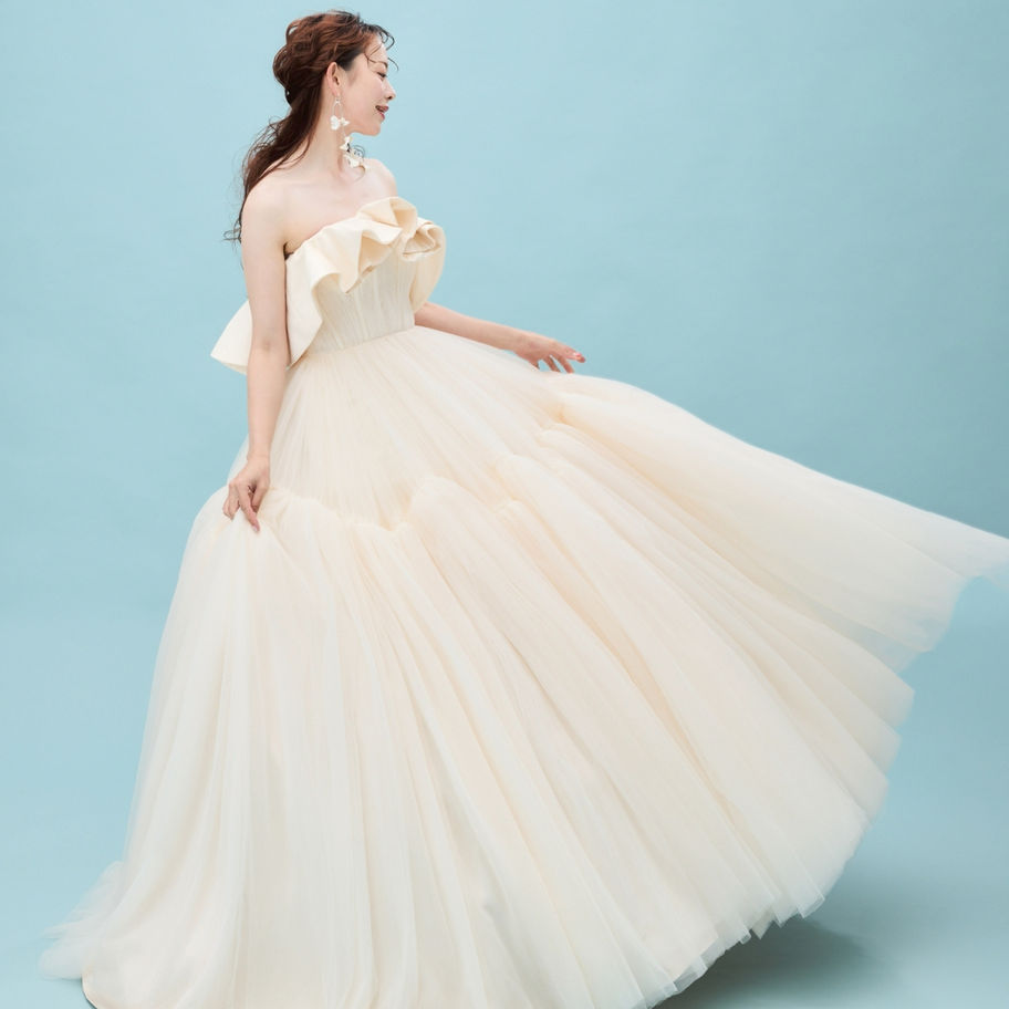 ふんわりと広がるボリューム感と、繊細なチュールの軽やかさがイマドキなVanilla
